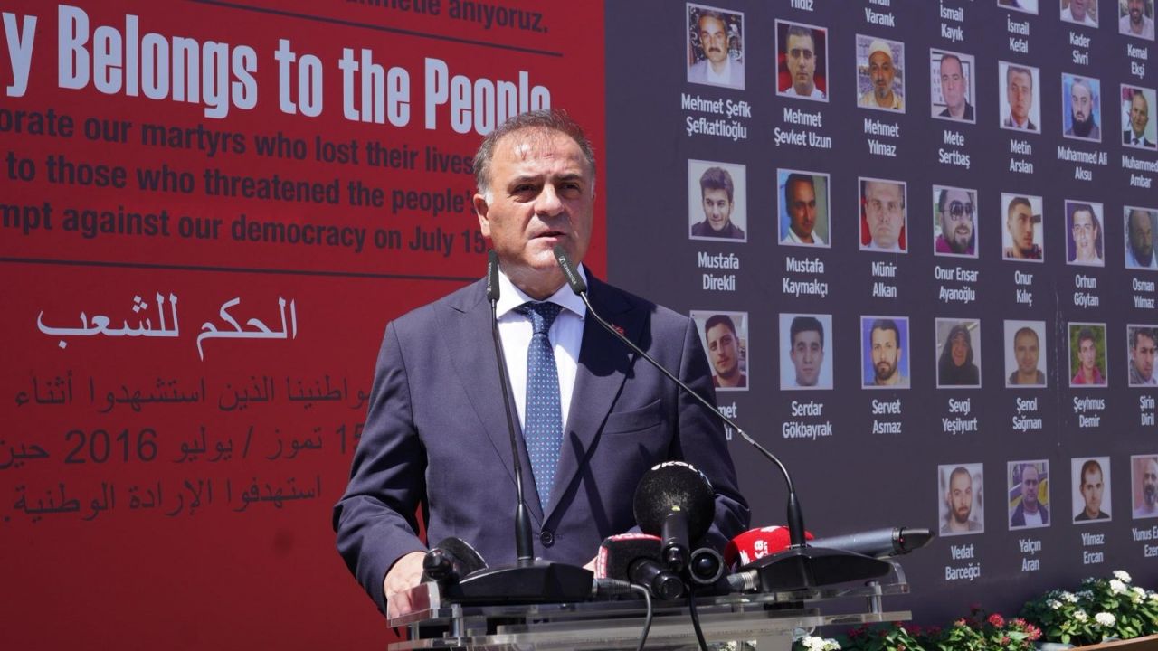 "Şehitler Panosu" önünde gerçekleştirilen anma programında konuşan İBB Başkan Vekili Nuri Aslan, 15 Temmuz'un Türkiye'nin demokrasi tarihine kara bir leke olarak geçtiğini, 15 Temmuz 2016'nın ülke demokrasi tarihine hiç yakışmayan, en karanlık günlerden biri olduğunu ve hain bir terör örgütünün ülkeyi ele geçirmeye çalıştığını belirtti.
