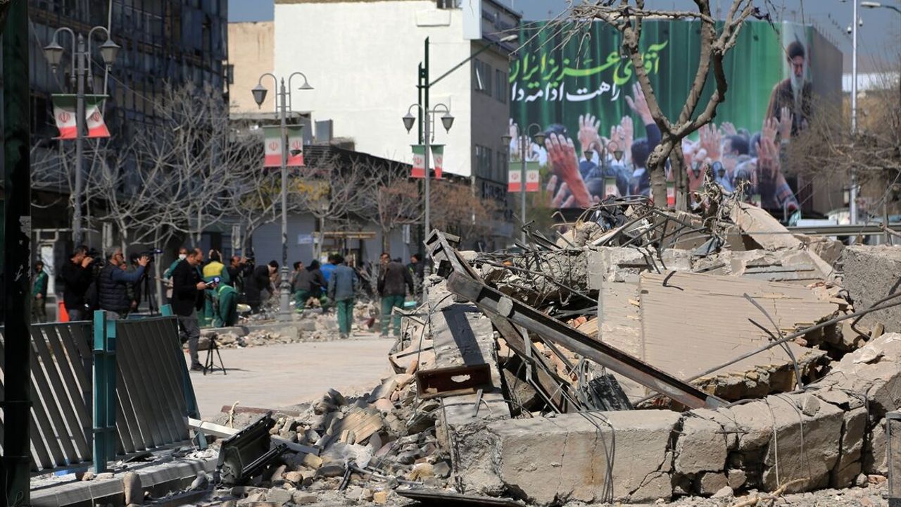 İranlıların bulaşma noktalarından olan Meydan'da yer alan polis merkezine ait bina da yerle bir olurken, çevredeki birçok ev ve ofiste de hasar oluştu.