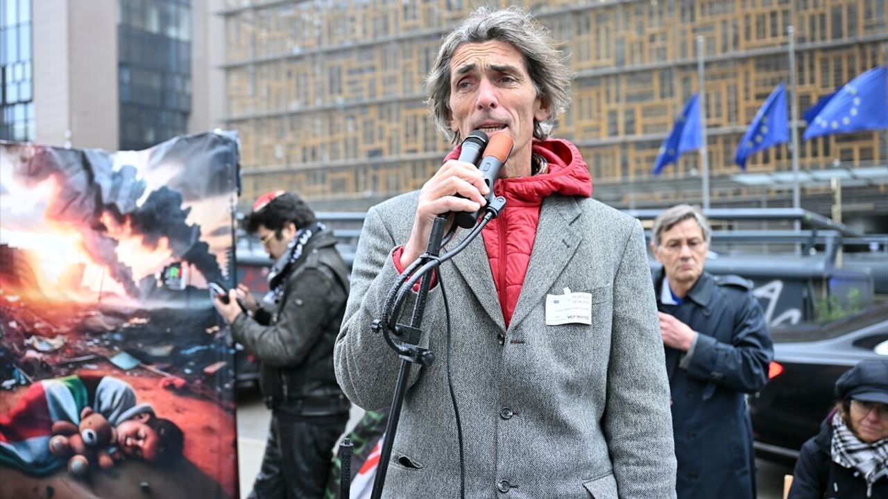 BRÜKSEL (AA) - Fransa'da 25 gündür "Filistin'de adalet" için açlık grevi yapan göstericiler, Brüksel'de Avrupa Birliği (AB) personeliyle AB Komisyonu binası önünde Gazze'ye insani yardım girişlerinin sağlanması için protesto düzenledi.