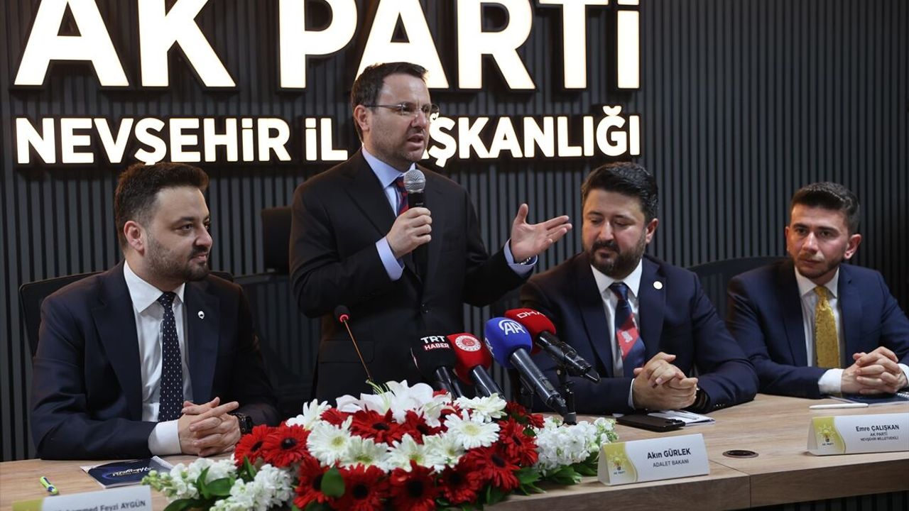 Adalet Bakanlığı görevinin gelip geçici olduğunu dile getiren Gürlek, 'Önemli olan Nevşehir'in geleceği. Nevşehir'e hizmet için geldik. Az önce Cumhurbaşkanımız da sağ olsun bizi kırmadı. Özellikle 33 yıl sonra bu topraklardan bir bakan çıkmasının heyecanını bekleyen insanların olduğunu söyledim yolda. O da dedi ki 'Ben de bir selam vereyim.' Cumhurbaşkanımız da heyecanımızı paylaştı. Onun da size selamları var.' ifadelerini kullandı.