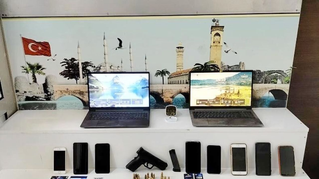Zanlıların adreslerinde ruhsatsız tabanca, 21 mermi, bir miktar uyuşturucu, çok sayıda SIM kart, banka kartları, cep telefonları ve dizüstü bilgisayarlar ile çeşitli belgeler ele geçirildi.