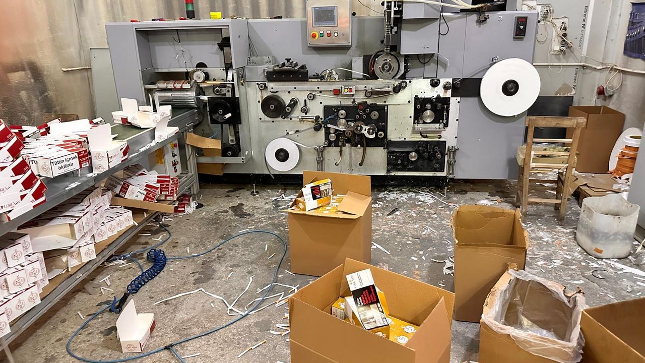Ekipler, operasyon düzenledikleri tesiste kaçak üretilen 20 milyon 400 bin makaron ele geçirdi.