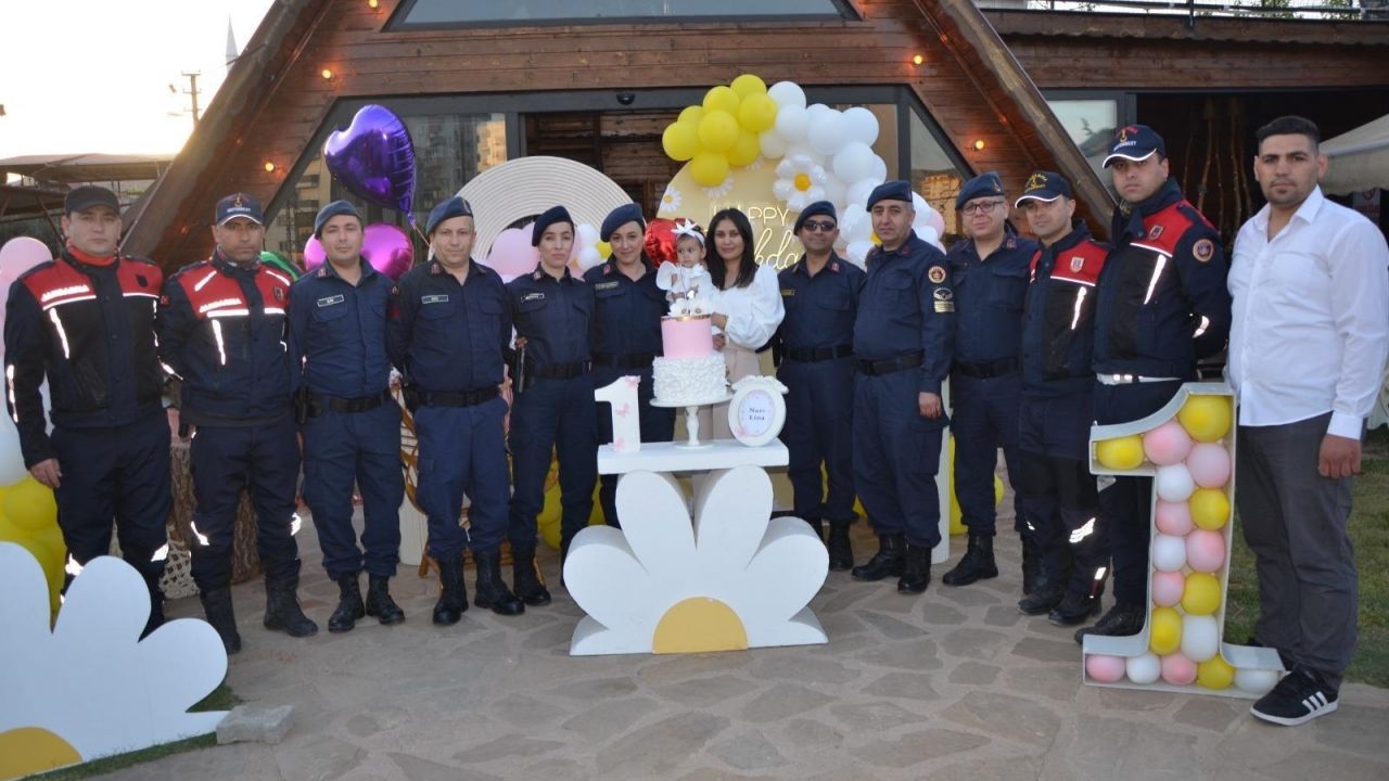 İl Jandarma Komutanlığı ve Kozan İlçe Jandarma Komutanlığı ekipleri, şehit Yaşar'ın 1 yaşına giren kızı Nare Lina'nın doğum gününü kutlamak için bir araya geldi.