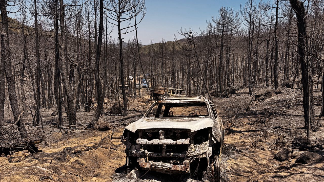 Yer yer dumanların yükseldiği ve yeşil örtünün adeta küle döndüğü bölgede, yanmış dozer, pikap ve arazözler dikkati çekti.