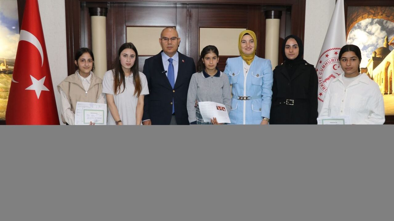 Vali Mustafa Koç, eşi Neslihan Gül Koç ile çeşitli nedenlerden dolayı eğitimden geri kalan ve yapılan çalışmalarla yeniden okula kazandırılan öğrencilerden 5'ini temsili olarak makamında ağırladı.
