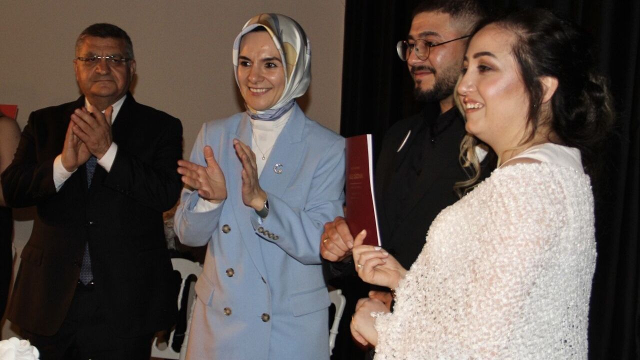 SİNOP (AA) - Aile ve Sosyal Hizmetler Bakanı Mahinur Özdemir Göktaş, Sinop’ta, "Evlenecek Gençlerin Desteklenmesi Projesi" kapsamında faizsiz kredi desteği sağlanan genç çiftin nikah törenine katıldı.