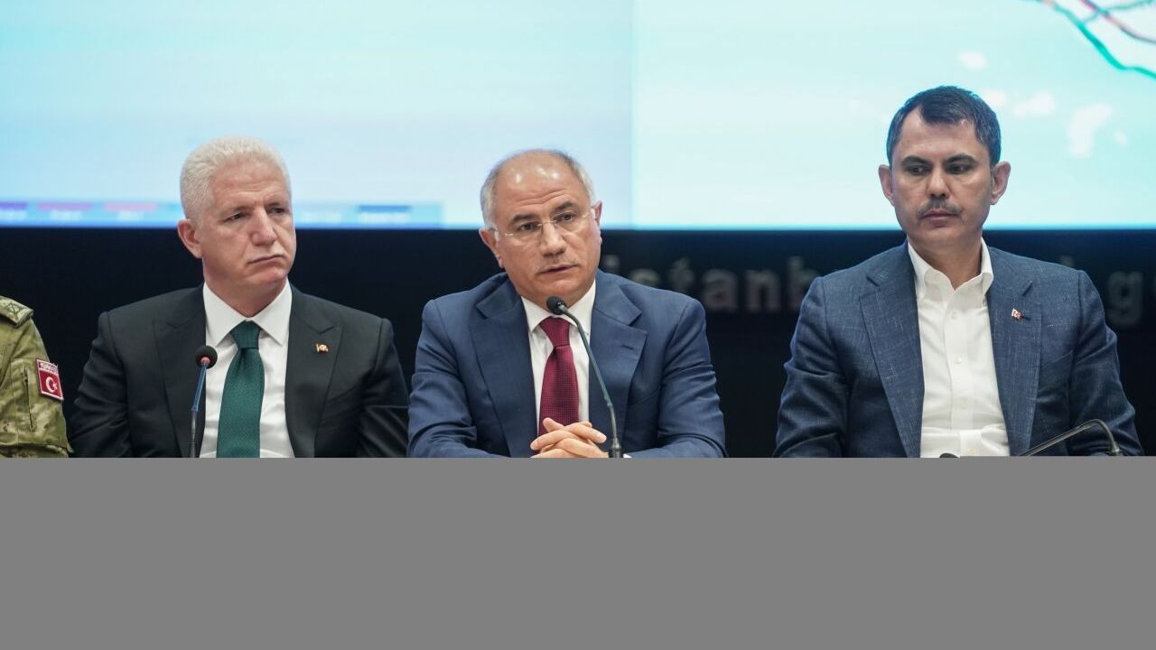 Ala, Marmara Denizi Silivri açıklarında meydana gelen 6,2 büyüklüğündeki depremin ardından Hasdal'daki İstanbul İl Afet ve Acil Durum Müdürlüğünde kurulan kriz merkezinde, İçişleri Bakanı Ali Yerlikaya, Çevre, Şehircilik ve İklim Değişikliği Bakanı Murat Kurum ile Sağlık Bakanı Kemal Memişoğlu'nun katılımıyla yaptıkları değerlendirme toplantısının ardından basın mensuplarına açıklamalarda bulundu.