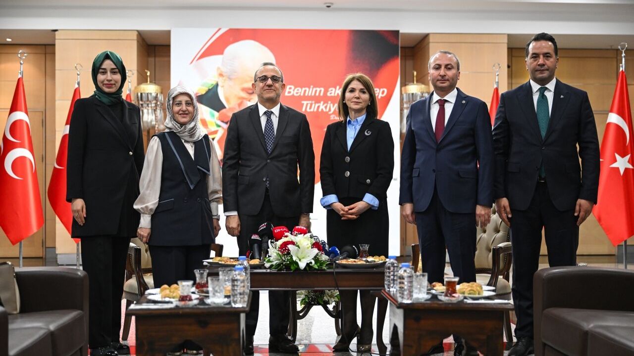MHP Genel Merkezi'ni ziyaret ederek bayramlaşmaya gelen AK Parti heyetini, Genel Başkan Yardımcısı Zühal Topcu, Siyaset ve Liderlik Okulu Koordinatörü MYK üyesi Turan Şahin ve MYK üyesi Özmen Alp Giray Erdemir'den oluşan heyet ağırladı.