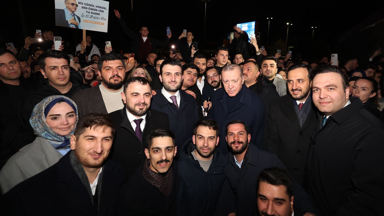 Erdoğan, doğum gününü kutlayan ve aracına karanfil atarak sevgi gösterisinde bulunan gençlerle bir süre sohbet etti, fotoğraf çektirdi. Bu sırada bazı gençler Cumhurbaşkanı Erdoğan'ın elini öptü.