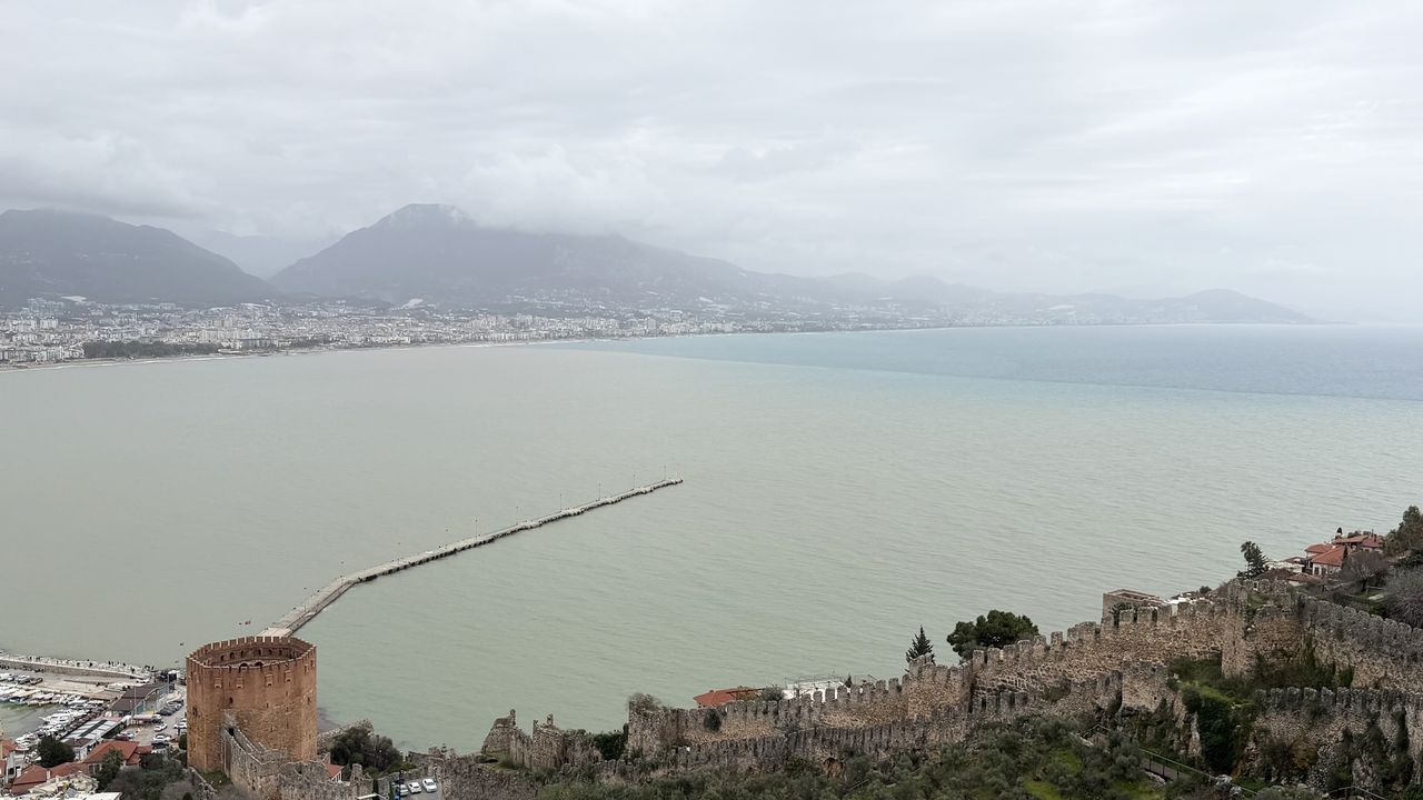 Keykubat ve Soğuk Kapı plajları ile Alanya Balıkçı Barınağı'nda deniz farklı renklere büründü.