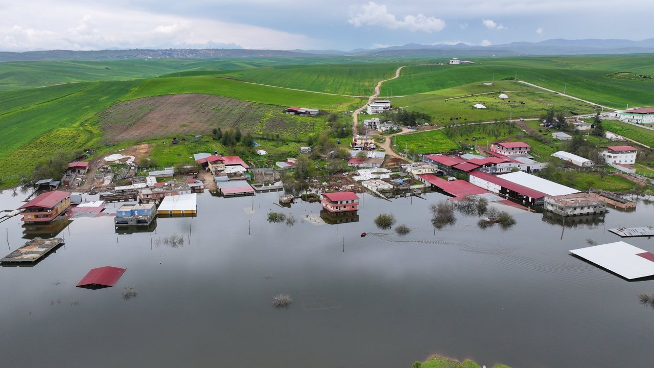 DİYARBAKIR (AA) - Diyarbakır'da Ambar Barajı havzasında daha önce kamulaştırılan ve son yağışların etkisiyle su altında kalan yapılar havadan görüntülendi.
