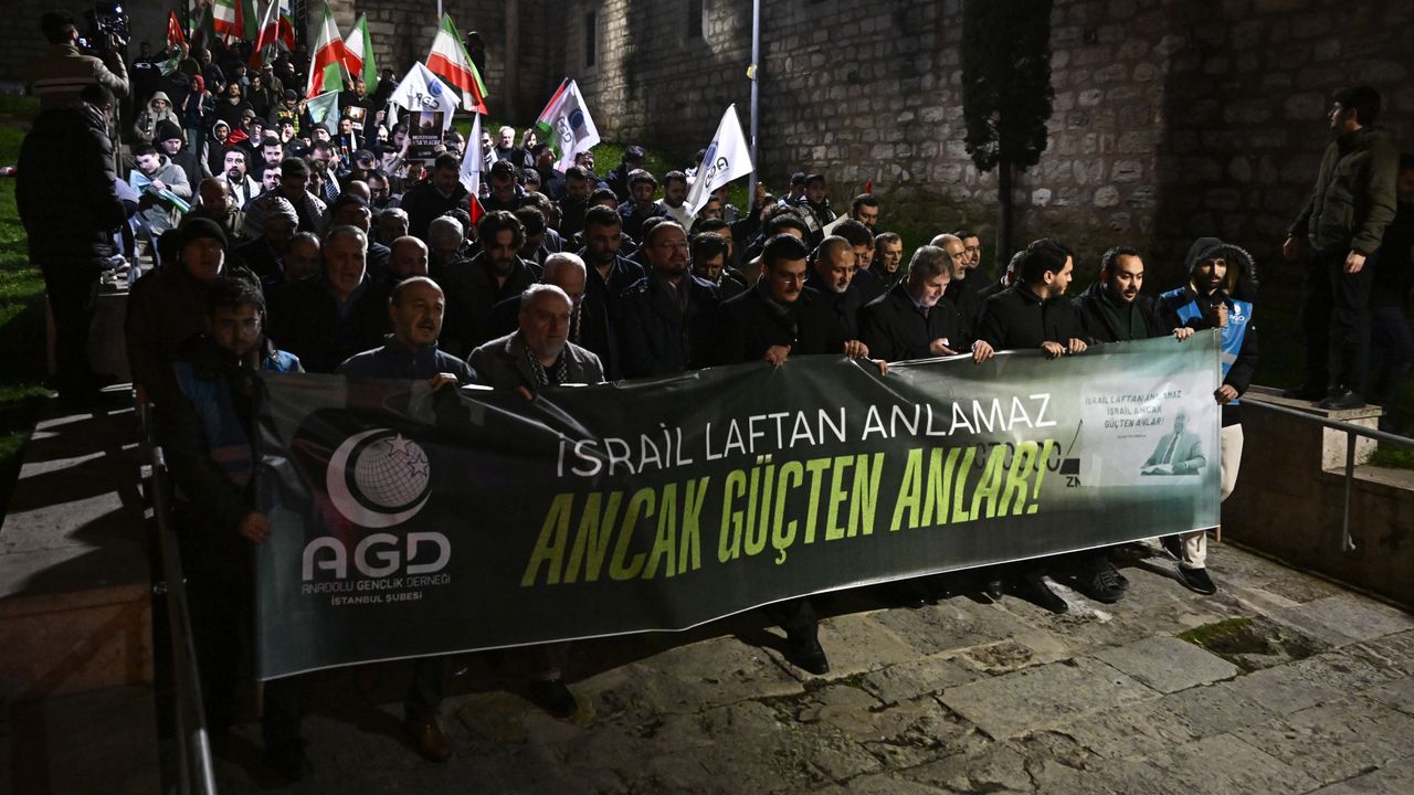 İSTANBUL (AA) - Anadolu Gençlik Derneği (AGD) üyesi bir grup, ABD ve İsrail'in İran'a yönelik saldırılarını protesto etti.
