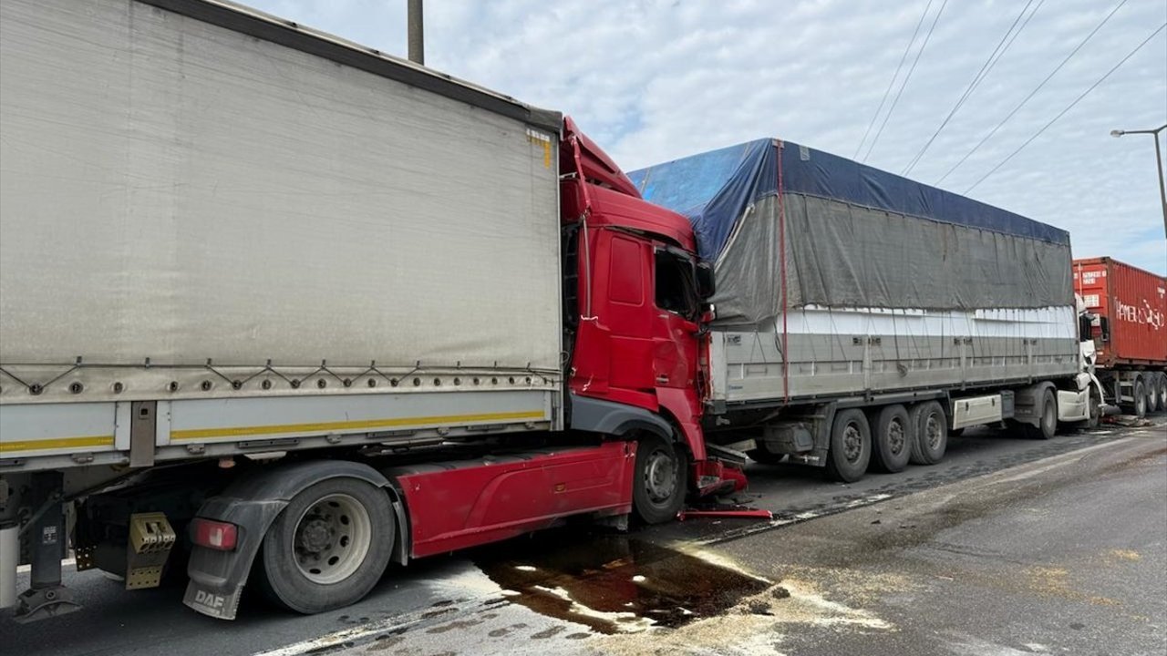 Otoyolun Ankara istikameti İzmit ilçesi Alikahya mevkisinde 6 tırın karıştığı zincirleme kaza meydana geldi.