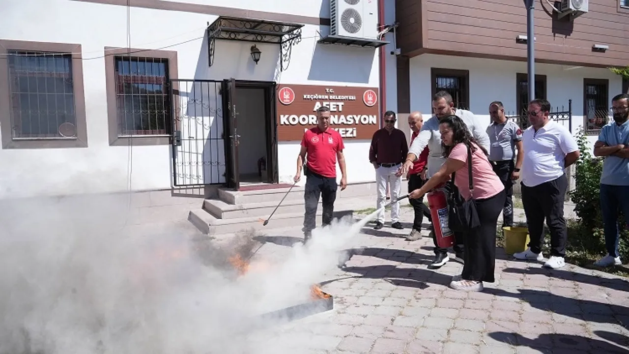 Ankara Keçiören Belediyesi, iş güvenliği ve çalışan sağlığını önceleyen yaklaşımıyla afetlere hazırlık eğitimlerini aralıksız sürdürüyor. Bu kapsamda, Keçiören Belediyesi Afet İşleri Müdürlüğü öncülüğünde belediye personeline yönelik “Afet Farkındalık ve Yangınla Mücadele Eğitimi” düzenlendi.ANKARA (İGFA) - Ankara Keçiören Belediyesi Afet Koordinasyon Merkezi (AKOM) çatısı altında düzenlenen eğitim, Doğal Afet Arama Kurtarma (DEAK) Eğitmeni Umut Muhammed Kuzey tarafından hem teorik hem uygulamalı olarak gerçekleştirildi. Eğitimlerde, afet öncesinde alınması gereken tedbirlerden afet anında doğru hareket tarzlarına, yangın öncesi önleyici uygulamalardan tahliye sırasında dikkat edilmesi gereken güvenlik önlemlerine kadar pek çok konuya değinildi.