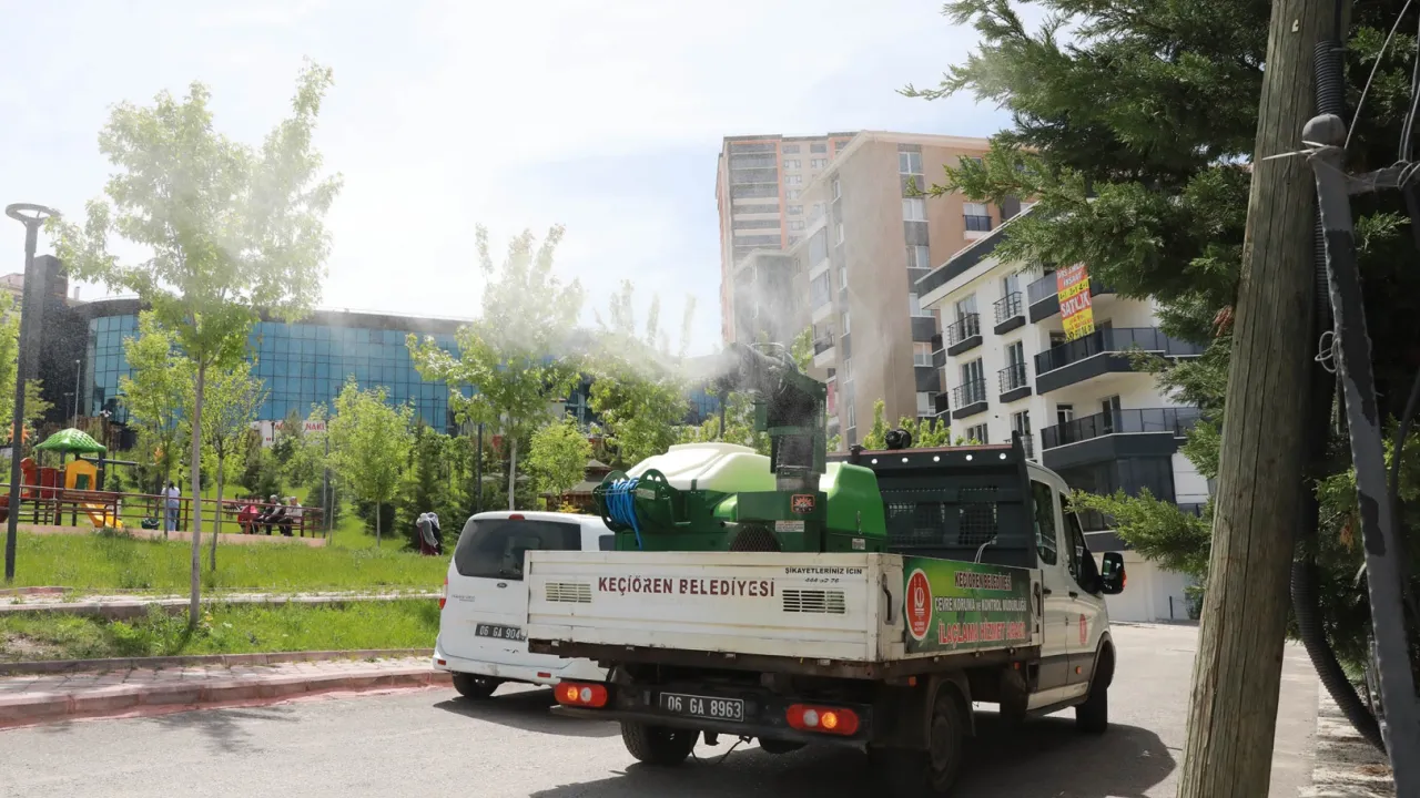 Ankara Keçiören Belediyesi, yazın kapıyı çaldığı günlerde havaların ısınmasıyla ortaya çıkan sinek, böcek ve haşerelerin yok edilmesi için ilçe genelinde mücadeleye başladı.ANKARA (İGFA) - Özellikle nemli ve suyun yoğunlukta olduğu alanlarda, parklarda ve pazar yerleri gibi yoğun kullanılan yerlerde başlatılan ilaçlama çalışmaları gece gündüz olmak üzere vardiyalı şekilde devam ediyor.