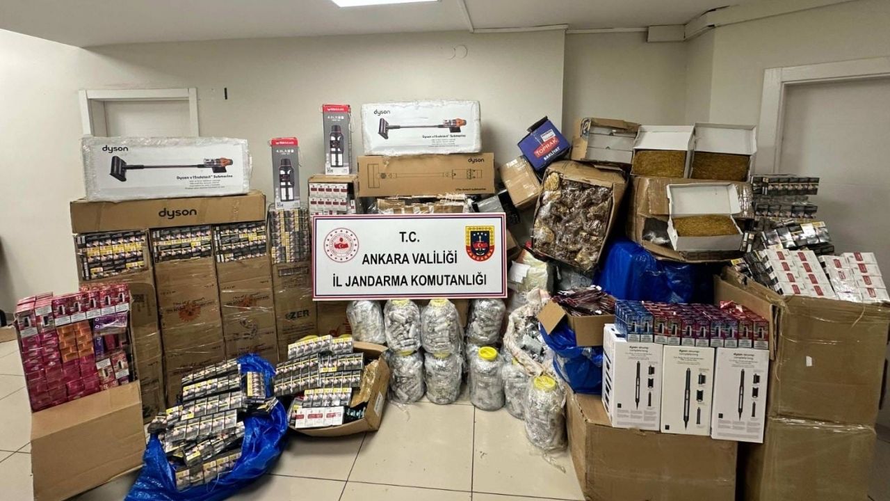 ANKARA (AA) - Ankara'da jandarma ekiplerince durdurulan bir tırda yapılan aramada, piyasa değeri 7 milyon 250 bin lira olan kaçak tütün ürünü ve elektronik aletler ele geçirildi. Olayla ilgili bir kişi gözaltına alındı.