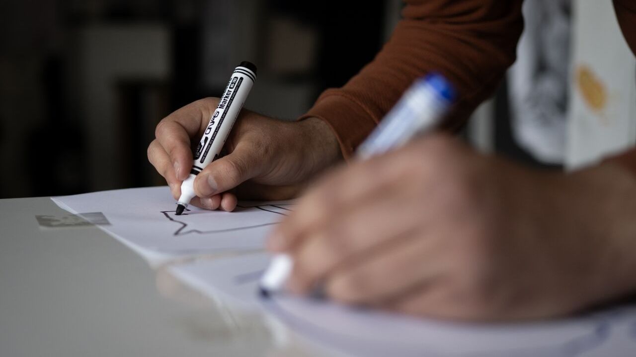 Garsonluk yaparak hayatını kazanan 24 yaşındaki İskender Kozan, yaklaşık 2 yıl önce merak üzerine iki elle aynı anda iki farklı resim çizmeye yöneldi.