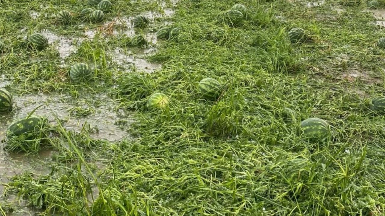 Doludan ve su baskınından seralardaki ekili domates, kavun, biber gibi ürünler ile açık alanda hasadına hazırlanılan karpuzlar zarar gördü.
