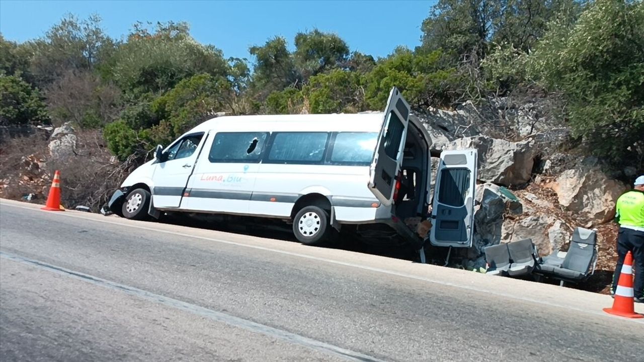 Özgür Taştekin idaresindeki 07 BMZ 721 plakalı tur minibüsü, Finike-Demre kara yolunda sürücüsünün direksiyon hakimiyetini kaybetmesi sonucu yoldan çıkarak kayalıklara çarptı.