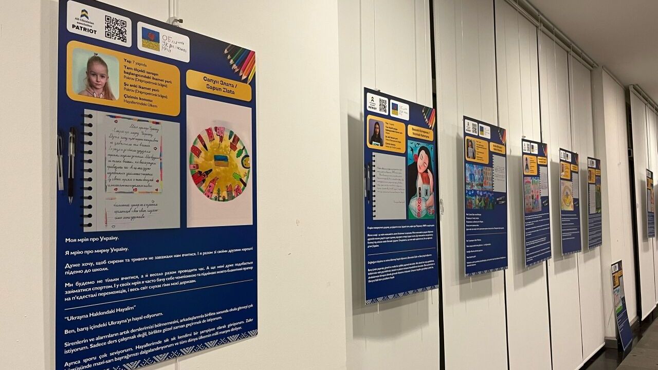 Gösterilerin ardından ziyaretçiler, Ukrayna'nın 22 bölgesinden ve 11 farklı ülkeden toplam 215 Ukraynalı çocuğun hayallerini çizdiği resimler ile yolladıkları mesajların yer aldığı sergiyi gezdi.