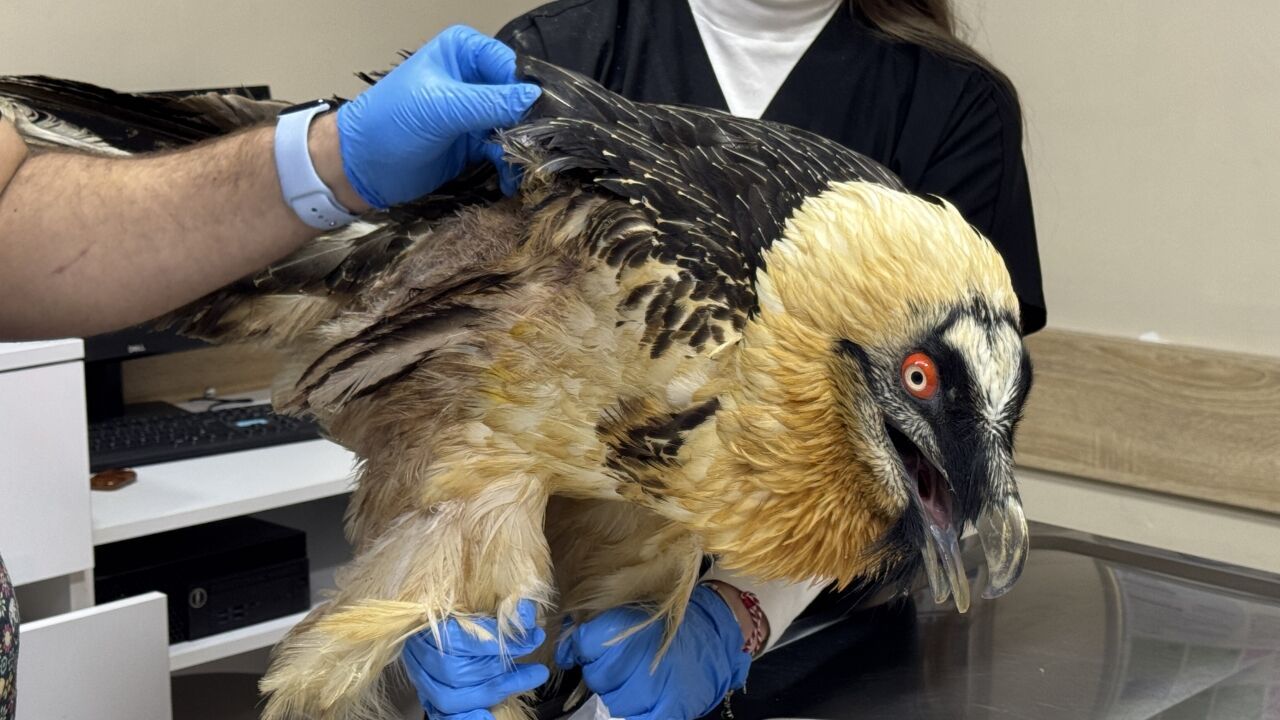 Sağ kanadında kırık ve yaralanmaya bağlı enfeksiyon tespit edilen sakallı akbaba il merkezindeki bir klinikte tedavi altına alındı.