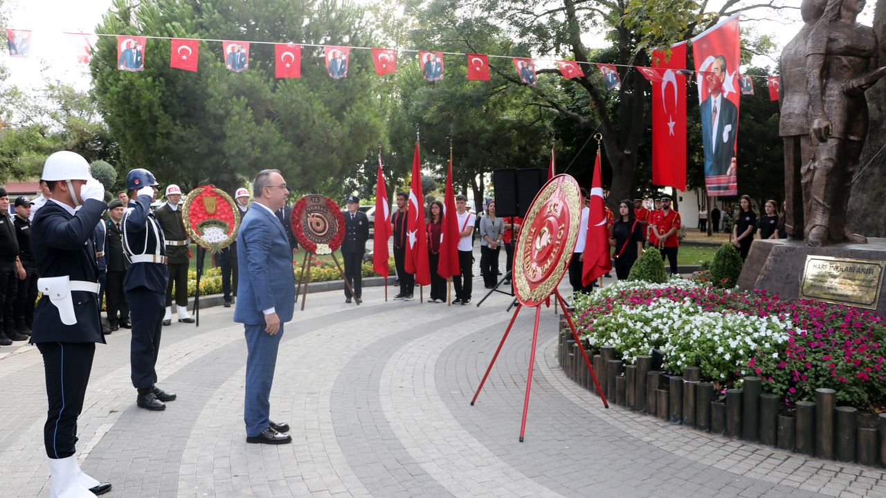 Sahil dolgu alanındaki törende, Tekirdağ Valisi Recep Soytürk, Garnizon Komutan Vekili Piyade Albay Zeki Yavuz ve Tekirdağ Büyükşehir Belediye Başkanı Candan Yüceer, Atatürk Anıtı'na çelenk sundu. Ardından saygı duruşunda bulunuldu, İstiklal Marşı okundu.