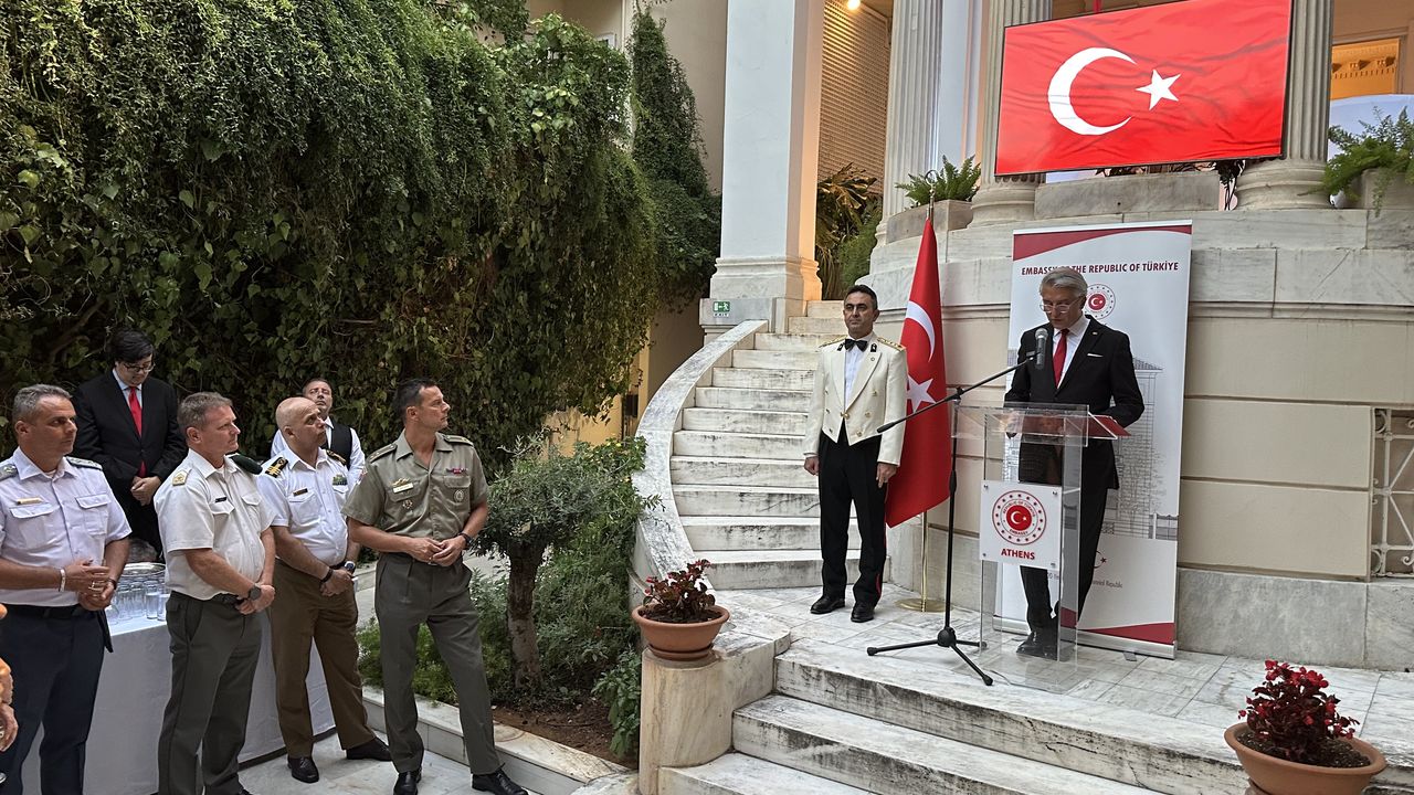 Türkiye'nin Atina Büyükelçisi Çağatay Erciyes'in ev sahipliğinde, Büyükelçilik konutunda düzenlenen resepsiyona, yabancı misyon temsilcileri, Yunanistan Silahlı Kuvvetleri ve hükümetinden yetkililer, Büyükelçilik ve Başkonsolosluk çalışanları ile vatandaşlar katıldı.