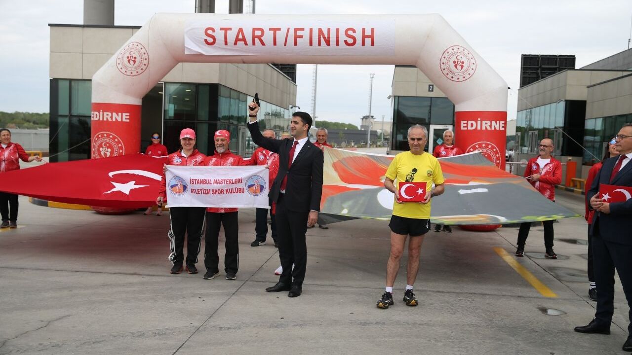 Ata toprağını teslim alan sporcular, sınır kapısından çıkarak koşuya başladı.