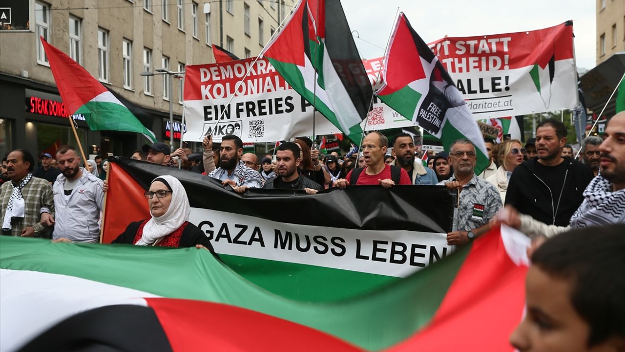VİYANA (AA) - Avusturya'nın başkenti Viyana'da yüzlerce Filistin destekçisi, İsrail'e yaptırım uygulanması çağrısıyla gösteri düzenledi.
