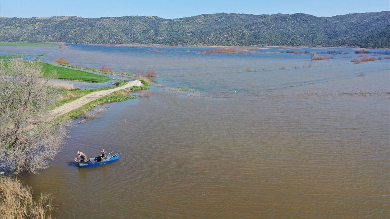 Bölgedeki bazı balıkçılar ve çiftçiler kayıkla açıldıkları suda balık avladı.