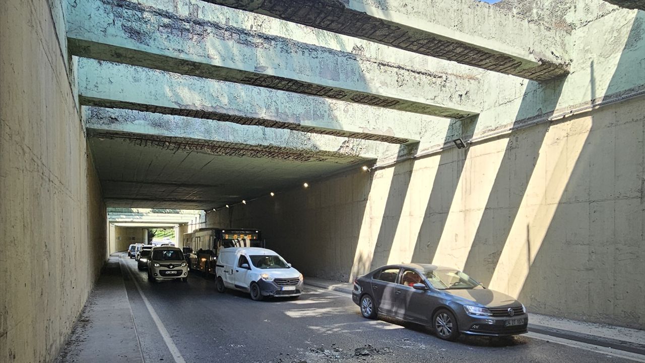 Taşocağı Yolu Caddesi'ndeki alt geçitte kopan beton parçaları, trafiği tehlikeye düşürdü.
