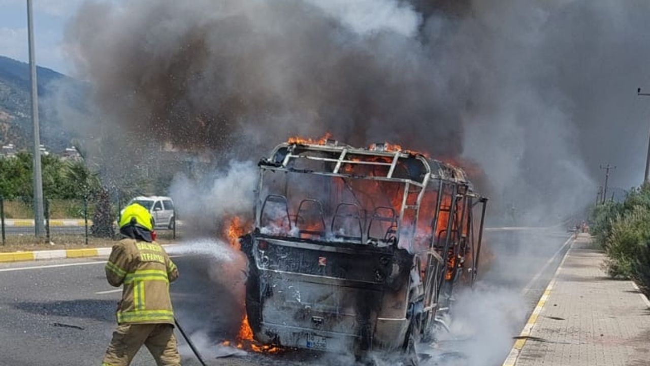 İtfaiye ekiplerince söndürülen yangında, minibüs kullanılamaz hale geldi.