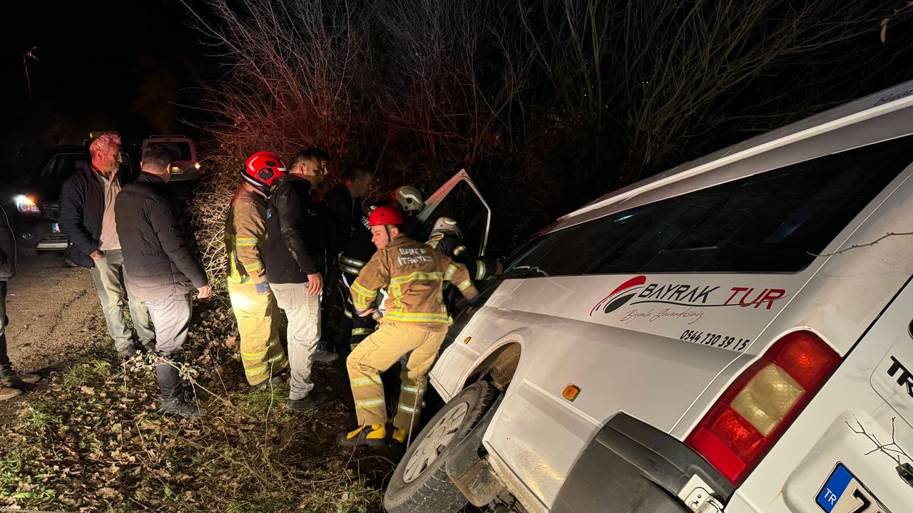 E.B. (55) idaresindeki 74 AU 360 plakalı minibüs, Dereköyü köyü mevkisinde şarampole devrildi.