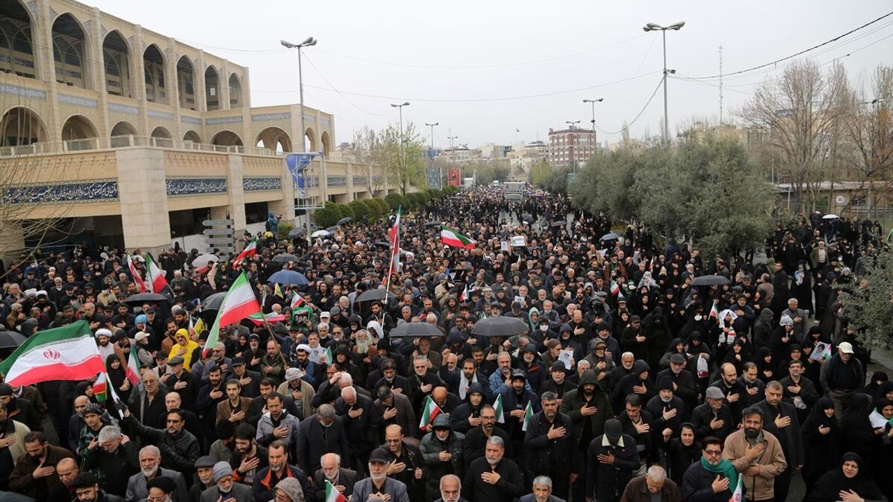 ABD ve İsrail aleyhine sloganlar atılan yürüyüşte İran yönetimine destek mesajları verildi.