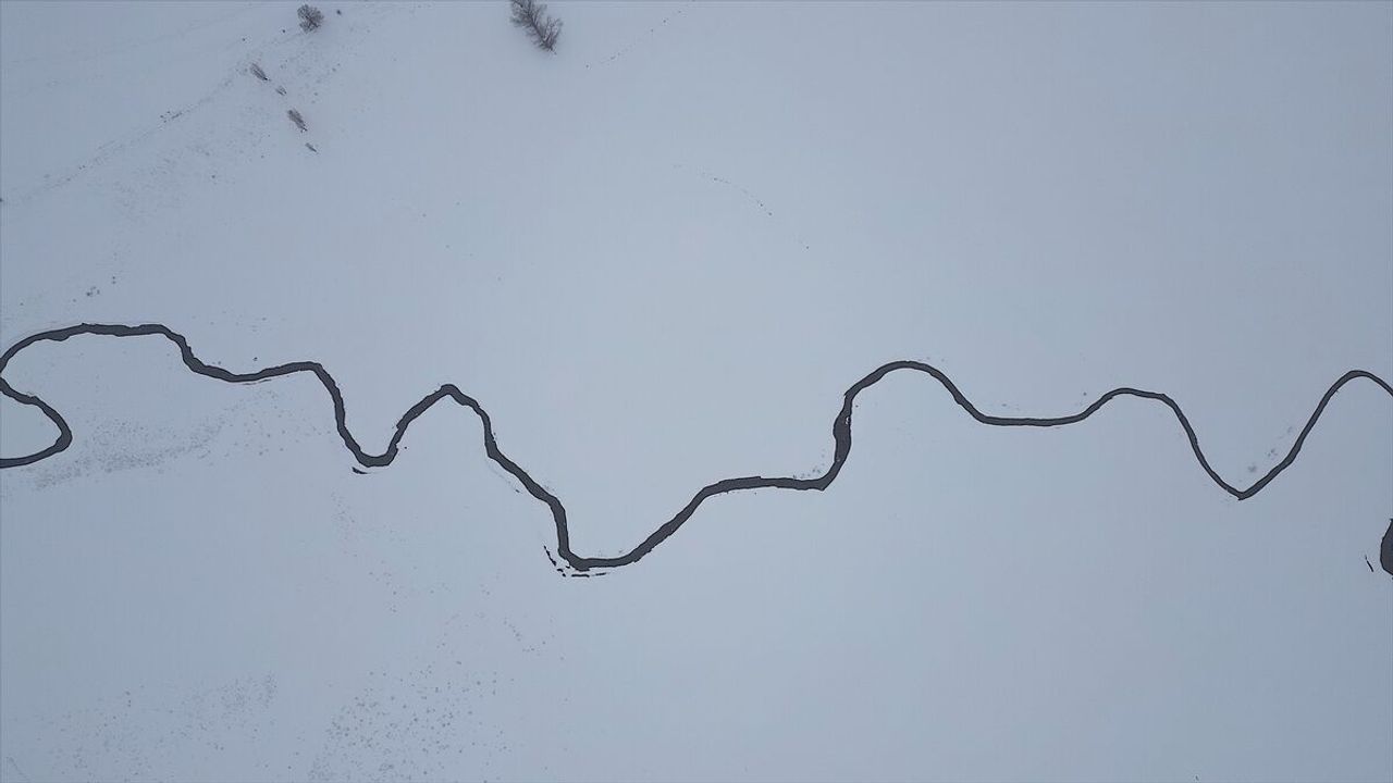 Kıvrım kıvrım akan mendereslerde güzel kış manzaraları ortaya çıktı.