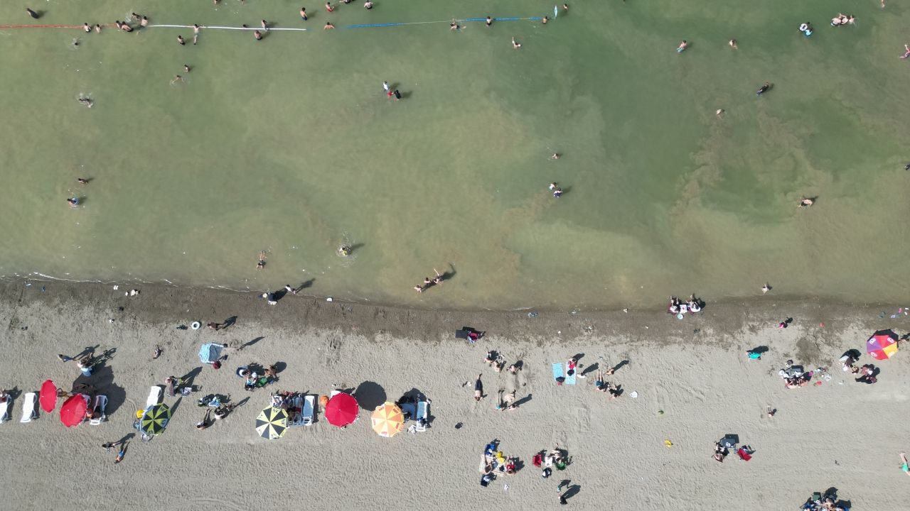Burada nehir kenarından suya atlayan vatandaşlar, serin suyun tadını çıkarttı.
