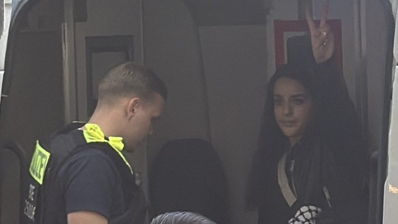Göstericiler Filistin bayrakları ile üzerinde '(Almanya Başbakanı Friedrich) Merz, torunlarına acıyorum, senin mirasın yüzünden utanç duyuyorlar', 'Soykırımı durdurun', 'Hey siyonistler, Almanya sizi seviyor. Gelin ve buraya yerleşin', Filistin'i kurtarın, insanlığı koruyun' ve '9 bin 600 Filistinli esir hepsi serbest bırakılsın' yazan dövizler taşındı.