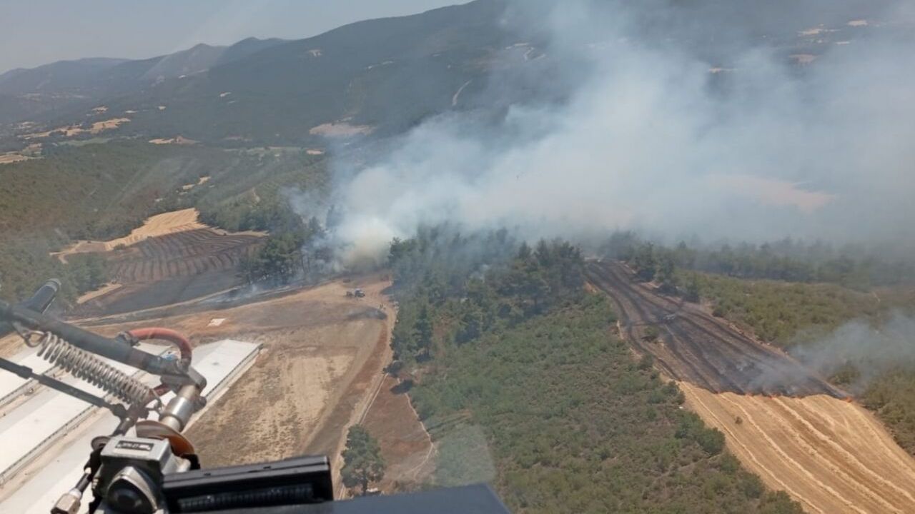 Alevler rüzgarın etkisiyle ormanlık alana sıçradı. İhbar üzerine bölgeye Orman İşletme Müdürlüğüne ait 13 arazöz, 127 personel ile helikopter sevk edildi.