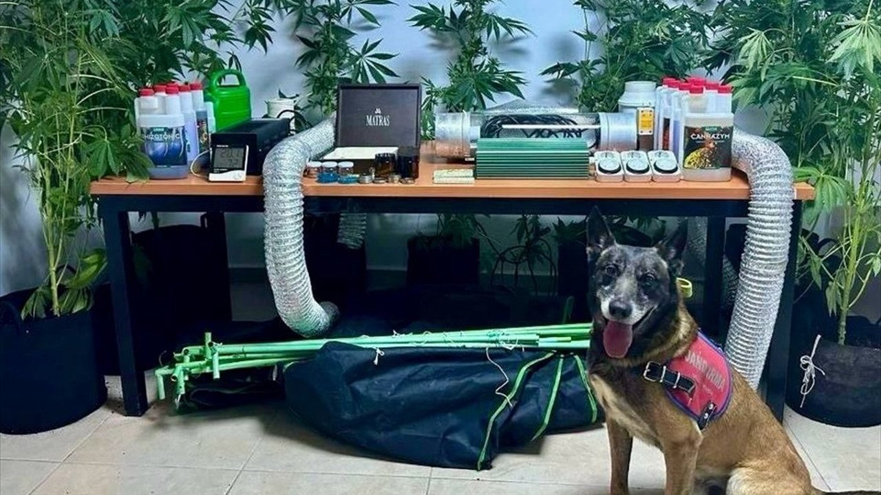 Ekiplerce evde yapılan aramada 9 kök kenevir bitkisi, 3 uyuşturucu öğütme aparatı, uyuşturucu kullanma aparatı, 35 kenevir ve skunk tohumu, 11 parçadan oluşan iklimlendirme ve ışık sistemi, 8 litre zirai ilaç ve gübre ele geçirildi.