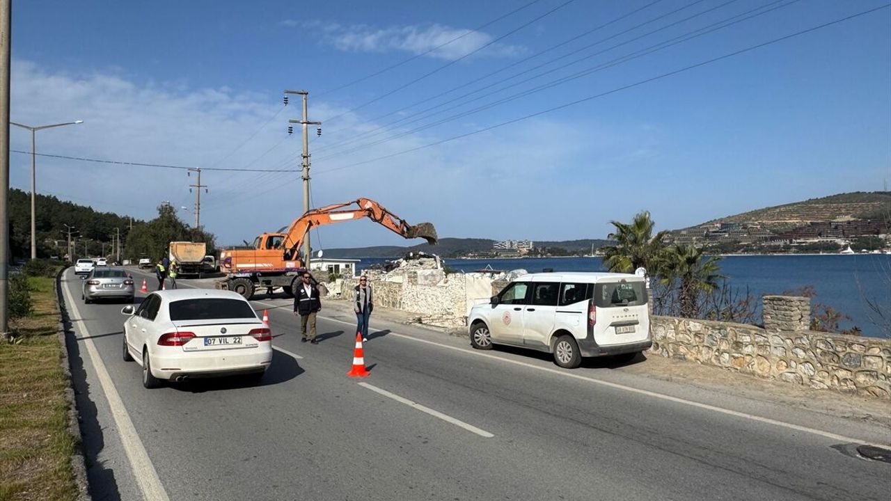 Kaçak yapıların yıkım işlemlerine, Milli Emlak Müdürlüğünün gözetiminde Bodrum Belediyesi Yapı Kontrol Müdürlüğü ekiplerince başlandı.