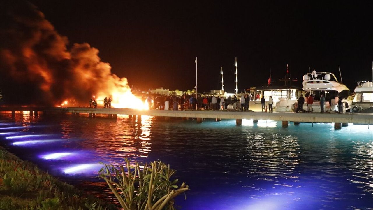 Yalıkavak Mahallesi'ndeki bir marinada demirli motoryatta henüz belirlenemeyen nedenle yangın çıktı.