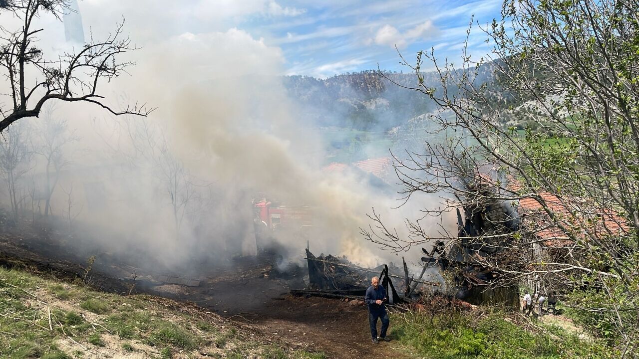 Ekiplerin müdahalesi sonucu söndürülen yangında köy konağı, cami ve ev kullanılamaz hale geldi.