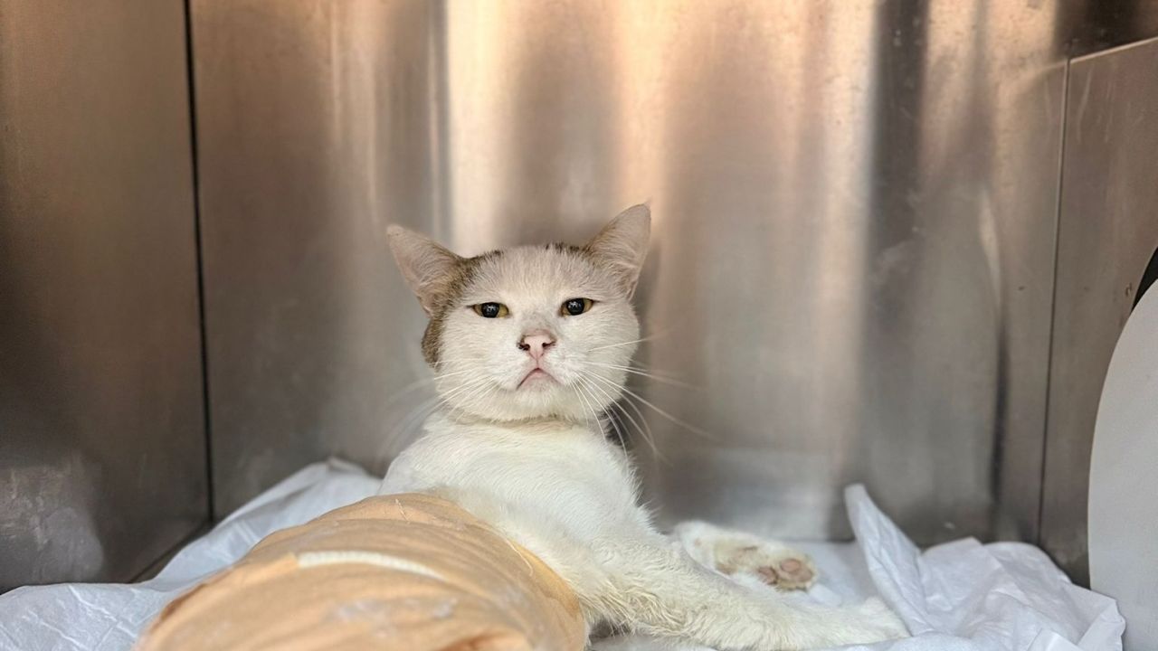 Merkeze bağlı Yarıköy Köyü'nde yaralı bulunan kedi Mehmet Akif Ersoy Üniversitesi Hayvan Hastanesine getirildi.