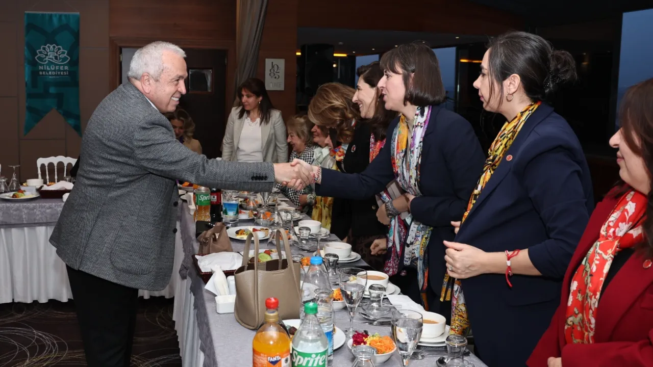 Nilüfer Belediye Başkanı Şadi Özdemir, 8 Mart Dünya Kadınlar Günü nedeniyle kadın muhtarlar, belediye meclis üyeleri, başkan yardımcıları ve müdürlerle iftar programında bir araya geldi. Nilüfer’in bir kadın şehri olduğu dile getiren Başkan Şadi Özdemir, “Kadınların her alanda daha çok rol alması için çaba sarf eden bir yönetim anlayışına sahibiz” dedi.BURSA (İGFA) - Bursa Nilüfer Belediye Başkanı Şadi Özdemir, eşi Nuray Özdemir ile birlikte 8 Mart Dünya Kadınlar Günü nedeniyle kadın muhtarlar, belediye meclis üyeleri, başkan yardımcıları ve müdürlerle iftar yemeğinde buluştu. Nilüfer’in bir kadın kenti olduğunu belirten Başkan Şadi Özdemir, “Nilüfer, aynı zamanda kadınların güvende olduğu, öncelendiği ve değerli olduğu bir kent. Biz de kadınların daha çok rol alması için çaba sarf eden bir yönetim anlayışına sahibiz. Başkan yardımcılarımızın da çoğu kadın” dedi.