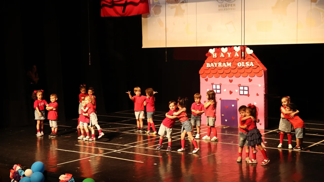 Bursa'da Nilüfer Belediyesi kreşlerinde eğitim gören 3 - 6 yaş arası minikler, yıl boyunca öğrendiklerini yıl sonu mezuniyet töreninde sergiledi. Nâzım Hikmet Kültürevi’nde düzenlenen etkinliklerde, öğrenciler performansları ile alkışları topladı.BURSA (İGFA) - Nilüfer Belediyesi’ne bağlı kreşlerde eğitim gören minikler, yıl boyunca öğrendiklerini Nâzım Hikmet Kültürevi’nde düzenlenen yıl sonu mezuniyet törenlerinde sergiledi.