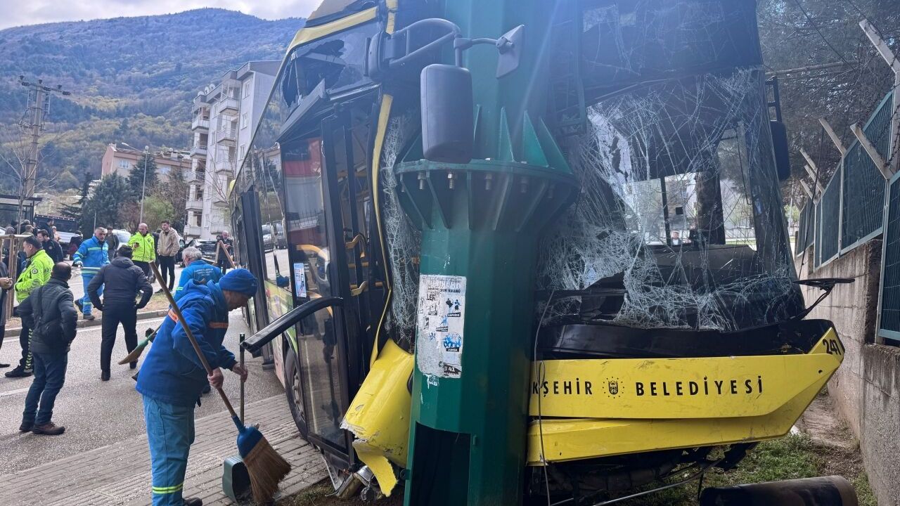 Yıldırım ilçesi Siteler Mahallesi Kanuni Caddesi'nde Şafak B. idaresindeki Bursa Büyükşehir Belediyesi ait 16 JJK 41 plakalı halk otobüsü, henüz sürücüsünün ismi öğrenilemeyen 16 CAG 42 plakalı otomobile, ardından da refüjü aşıp aydınlatma direğine çarptı.
