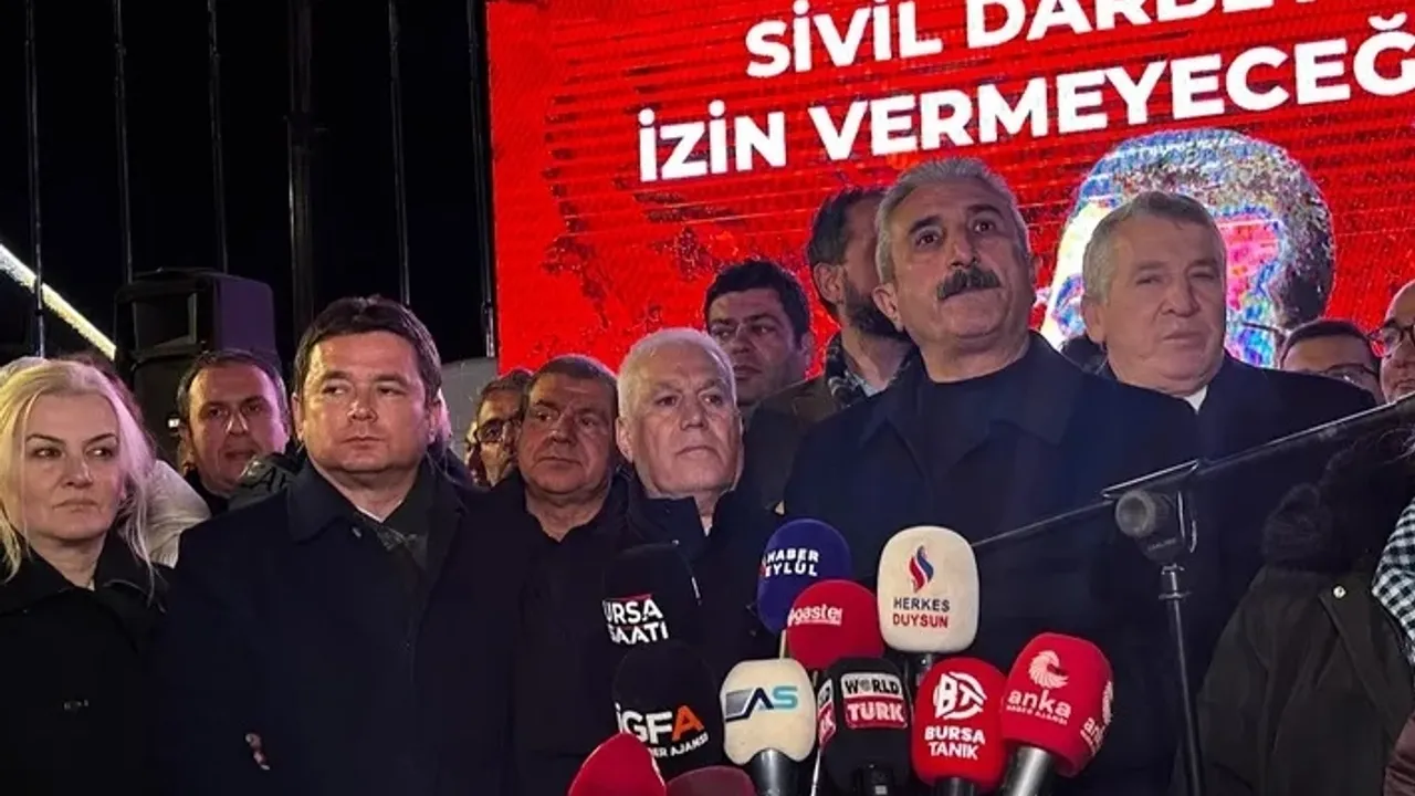 Osmangazi Belediye Başkanı Erkan Aydın ise, “Hak, hukuk, adalet arayışında toplanmış bulunuyoruz. Mazlumun ahı, indirir şahı. Her şeyin bir vakti vardır ve o vakit geliyor. Vakitlerinin dolduğunu iktidar da görüyor. O yüzden bu antidemokratik yollara başvuruyor ama zulümler ve haksızlıklar elbet bir gün biter, bitişi çok yakın. Ekrem Başkan ne dedi? ‘Ne hak yetim ne de hakkımı yediririm’ dedi. Hakkımızı yedirir miyiz? 23 Martta bütün yurttaşlarımızı sandığa bekliyoruz. Burada demokrasiyi çalıştıracağız. Bu iktidarı göndereceğiz.”