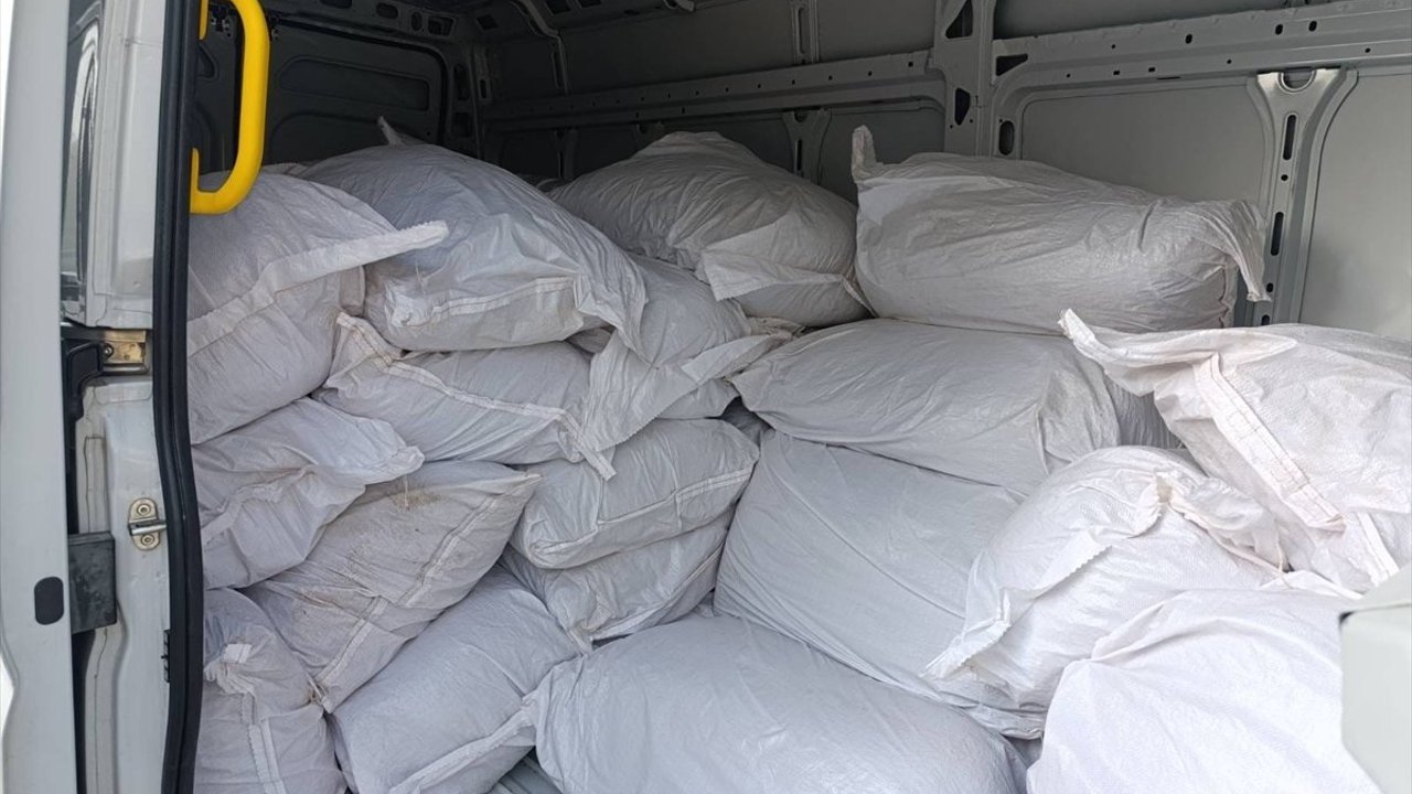 Şüphelinin ev ve iş yerinde yapılan aramalarda bandrolsüz 1 ton 973 kilogram kıyılmış tütün, 160 bin makaron, 246 bin sigara filtresi, 600 kilogram nargile kömürü, 850 kesilmiş bandrol ele geçirildi.