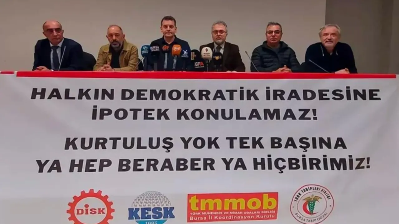 Bursa Tabip Odası Genel Sekreteri Dr. Muhsin Güllü tarafından okunan açıklamada, demokratik hakların savunulmasının meşru ve hayati bir sorumluluk olduğuna dikkati çekilerek, hiçbir baskının bu mücadeleyi durduramayacağı belirtildi.
