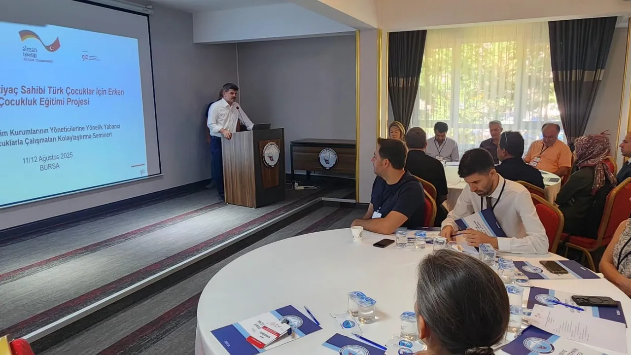 Bursa, Kocaeli ve İstanbul’dan okul yöneticileri, 11-12 Ağustos 2025 tarihlerinde Bursa’da düzenlenen “Okul Öncesi Eğitim Kurumlarının Yöneticilerine Yönelik Yabancı Uyruklu Çocuklarla Çalışmaları Kolaylaştırma Semineri”nde buluştu. Proje, Suriyeli ve ihtiyaç sahibi Türk çocuklarının erken çocukluk eğitimine erişimini artırmayı hedefliyor.BURSA (İGFA) - Bursa’da, Muradiye Turizm Mesleki ve Teknik Anadolu Lisesi’nde, Temel Eğitim Genel Müdürlüğü, Hayat Boyu Öğrenme Genel Müdürlüğü ve Alman Uluslararası İşbirliği Kurumu (GIZ) iş birliğiyle düzenlenen seminer başladı.
